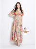 Off the Shoulder Stitching Printed Chiffon Dress