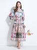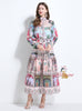 Palace Lantern Sleeve Button Slim Chiffon Printed Dress