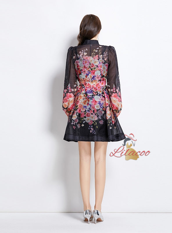 Palace Retro Pearl Breasted Printed Dress