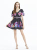 Plant Printed Bubble Sleeve V-neck Ruffled Dress
