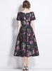 Purple Square Collar Jacquard Dress