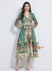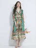 Retro Holiday Style Suit Collar Printed Long Sleeve Dress