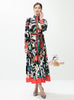 Retro Printed Breasted Long Sleeve Dress