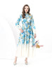 Retro Stand-up Collar Breasted Stitching Printed Long Dress