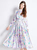 Retro Stand-up Collar Lantern Sleeve Printed Dress