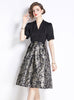 Retro Stitching Fake Jacquard V-neck Short-sleeved Dress
