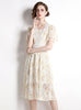 Retro V-neck Bubble Sleeve Short Sleeve Lace Dress