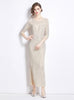 Sexy Round Neck Slim Gauze Rhinestone Dress