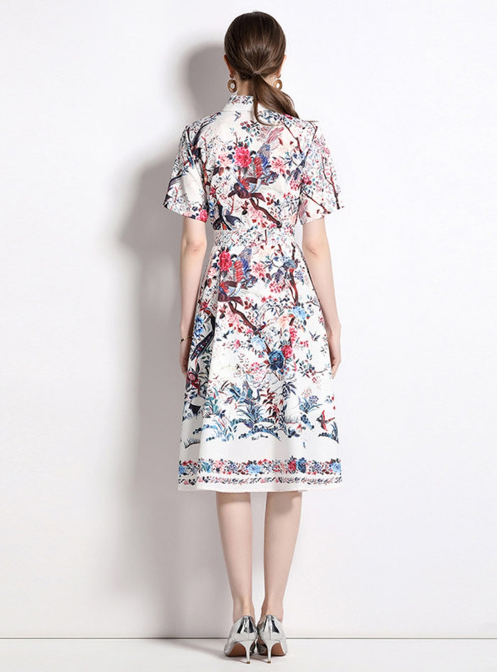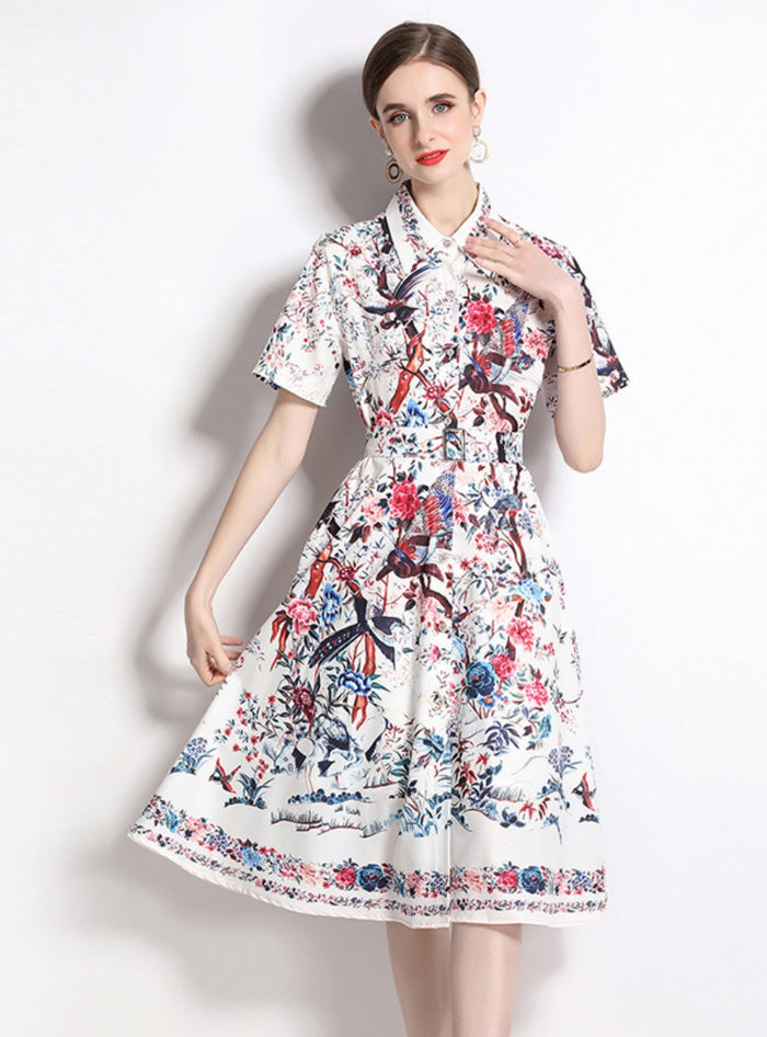 Shirt Lapel Short Sleeve Printed Big Swing Dress