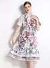 Shirt Lapel Short Sleeve Printed Big Swing Dress