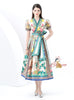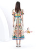 Short-sleeved Wide Swing Print Long Dress