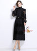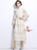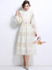 Slim-fit Stitching Lace Dress with Pearl Belt