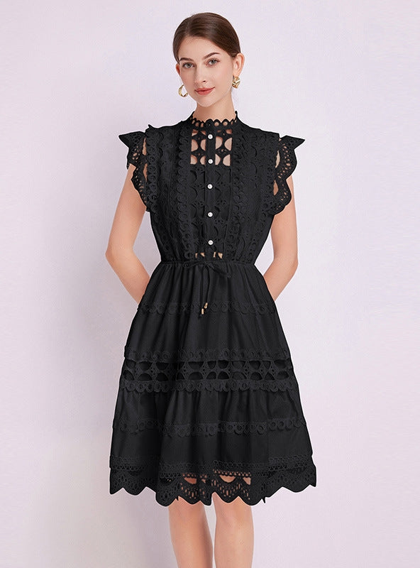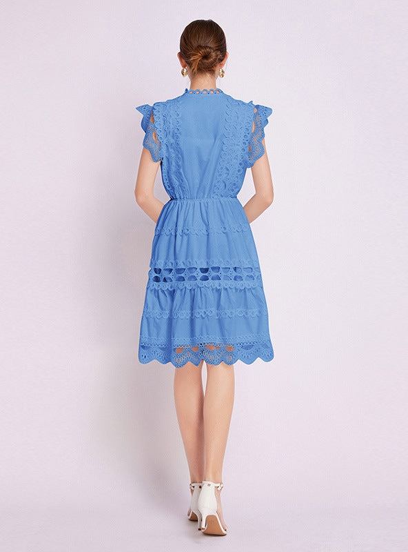 Silk-like turquoise flows delicately in this enchanting maxi dress. Highlighting a v-neckline and three-quarter lace sleeves, the design radiates both comfort and sophistication. Vertical lace panels cascade down the length, enhancing its flattering silhouette. Lightweight and breezy, this dress is perfect for summer gatherings, beach weddings, or daytime festivities. The vibrant turquoise hue stands out, complementing sun-kissed skin beautifully. Whether styled with wedges or strappy sandals, this dress guarantees effortless charm. A must-have for those who value timeless elegance combined with modern flair, it embodies beauty in simplicity.
