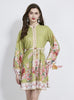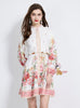 Stand-up Collar Holiday Lantern Sleeve Plant Print Mini Dress