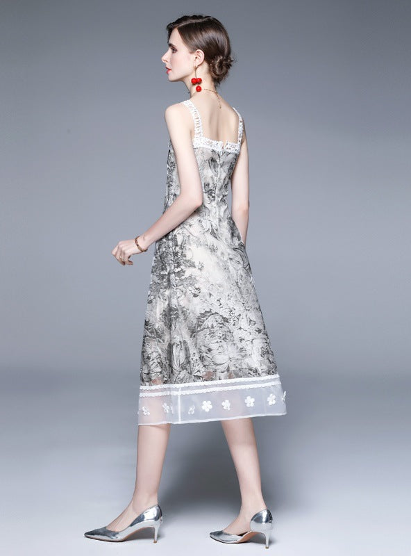 Three-dimensional Relief Jacquard Embroidery Retro Dress