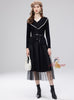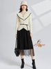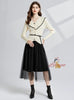 V-neck Knit Cardigan+Gauze Skirt Two-piece Suit