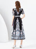 V-neck Lantern Sleeve Long Printed Dress