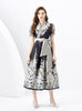 V-neck Lantern Sleeve Retro Print Dress