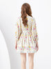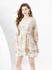 V-neck Lantern Sleeve Retro Printed Mini Dress