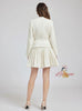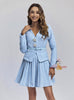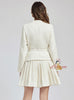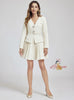 V-neck Pearl Brooch Coat+High Waist Skirt Suit
