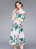 White Short Sleeve Rose Print Dress