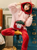 Pink Coral Fleece Warm Home Clothes Winter Two-piece Suit