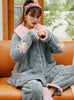 Women Blue Cherry Blossoms Coral Velvet Pajamas Women Thick Warm