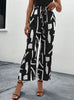 Elastic High Waist Printed Nine-point Pants