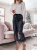 Lotus Leaf Sequins Drawstring High Waist Pants
