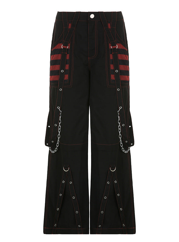 Retro Chain Contrast Striped Mesh Stitching Pants