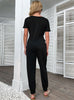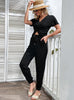 V-neck Kinked T-shirt Two-piece Trousers Suit