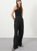 Women High Waist Pockets Female Pleated Wide Leg Pants