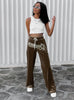 Women Letter Waist Tie Trousers Pant