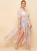Flower Short Sleeve Chiffon Loose Long Split Coat