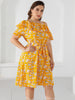 Shoulder Collar Printed Ruffled Holiday Dress