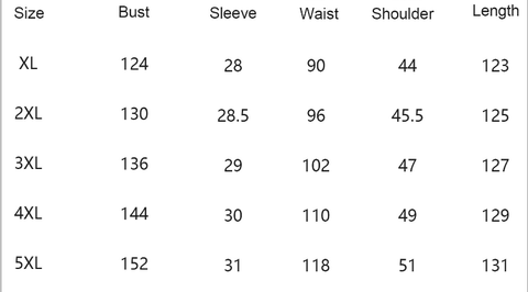 Size: XL,2XL,3XL,4XL,5XL