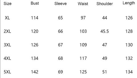 Size: XL,2XL,3XL,4XL,5XL