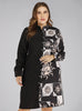 Retro Contrast Printing Stitching Lapel Shirt Dress