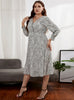 V-neck Long Sleeve Elastic Waist Slim Dress