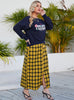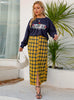 Printed Long-sleeved Top Plaid Skirt Suit