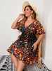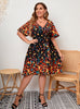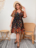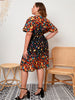 V-neck Lace-up Printed Casual Bat Sleeve Dress