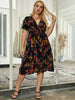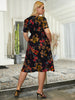 V-neck Lace-up Short Sleeve Printed Dress