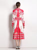 Lapel Slim Print Shirt Collar Long Sleeve Dress