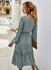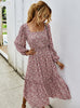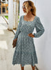 Long Sleeve Elegant Ladies Flower Square Collar Dresses