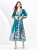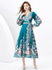 Retro Long-sleeved V-neck Printed Dress