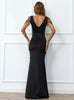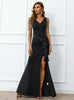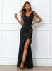 Bead V-neck Long Black Banquet Split Dress