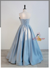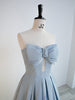 Blue Satin Strapless Pleats Bow Prom Dress