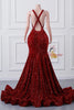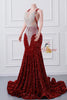 Burgundy Mermaid Sequins Lace Prom Dress