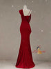Burgundy Mermaid Straps Pleats Prom Dress