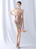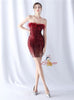 Burgundy Sheath Sequins Strapless Short Prom Dress